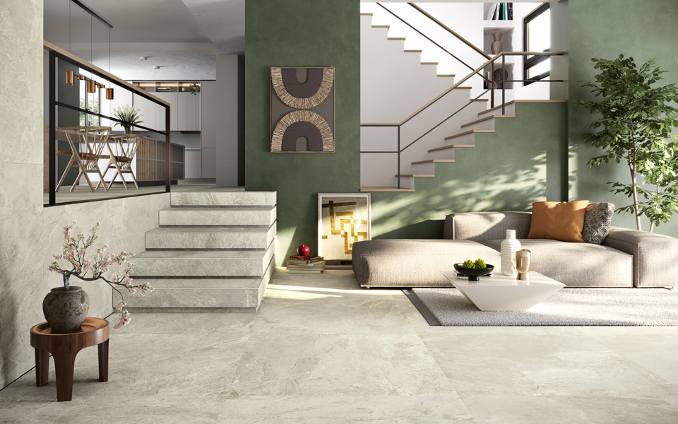 Looking to renovate your living room? Discover our porcelain stoneware tiles for living rooms, available in a wide range of realistic finishes.