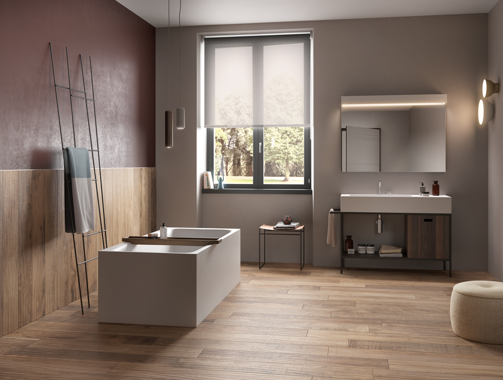 When selecting flooring and cladding materials in the shabby-chic style, it is fundamental not only to establish consistency between environments, but also to evaluate practicality. Thanks to technological advancements, porcelain stoneware is able to recreate the aesthetics of English cottage surfaces down to the millimetre.