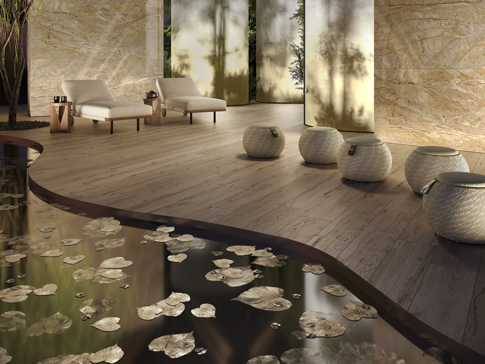 In the dialogue between stone and light, wood and warmth, marble and reflection, Cotto d’Este builds its vision of conscious and sustainable luxury: an elegance born from the earth and eternally preserved in the material.