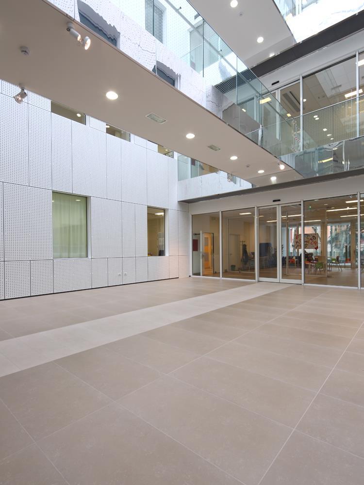 “Understanding that the environmental quality of a place, a space, plays an active role in the treatment process was the guideline that shaped the actions of the designers: there are – explains architect Sergio Beccarelli of Policreo – lots of little details that contribute to making this building more human and liveable, a more suitable place for looking after children”. These include the colours, for example, chosen by an interdisciplinary team, and all of the materials, including the Cotto d’Este ceramic surfaces.