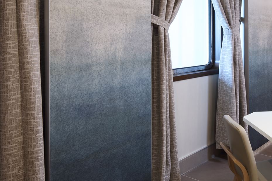 The project’s standout feature is the large Kerlite slabs, an extraordinary addition to any architectural and interior design project, which in this case are perfectly suited to the shipping industry since they are ultra-thin, extremely light surfaces that offer excellent performance and uncompromising aesthetic quality. Thanks to the fibreglass reinforcement, they guarantee extra resistance, while the exclusive Protect® technology transforms them into effective antibacterial shields for constantly protected spaces.