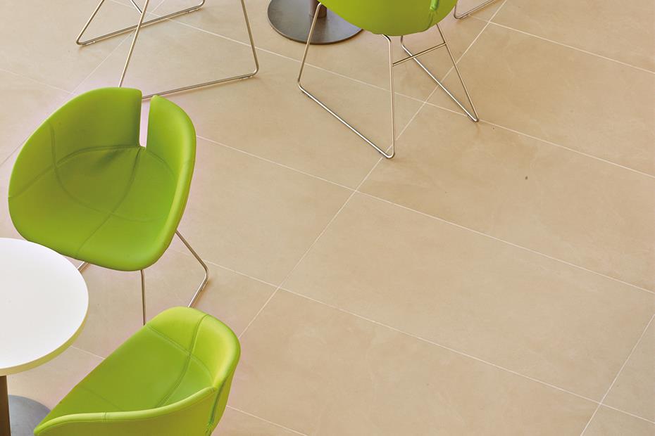 119x59.4 cm slabs of ELEGANCE porcelain stoneware were chosen to floor the large reception area, in perfect assonance with the materials used outdoors. An environment that feels natural, comfortable and bright has been created by combining this stone, inspired by limestone from Antalya, the most prestigious marble of Asia Minor, with wood furniture and distinctive brushwork. The warm hues and delicate veined patterns enhance the brightness of the large central area.