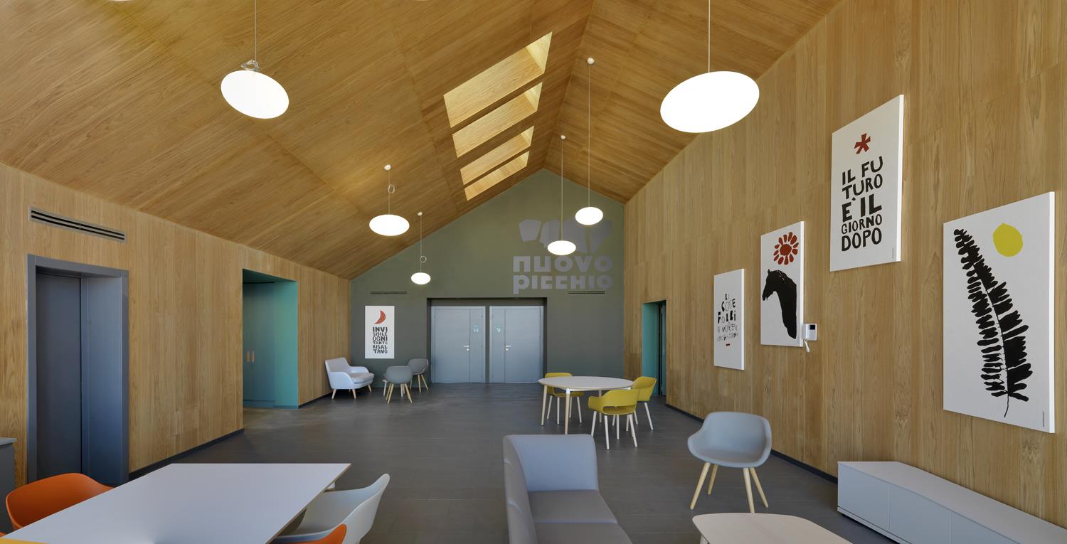 One of the projects implemented thanks to the “Nuova Polis” trust, which, after 30th May 2012, following the second tremor of the earthquake that struck several municipalities in Emilia Romagna, saw the presidents of Confindustria, Confservizi, CGIL, CISL and UIL come together and launch a solidarity fund for those affected by the earthquake, the “Nuovo Picchio” Centre for disabled people is the result of a collective effort that led to the construction of four other buildings.
